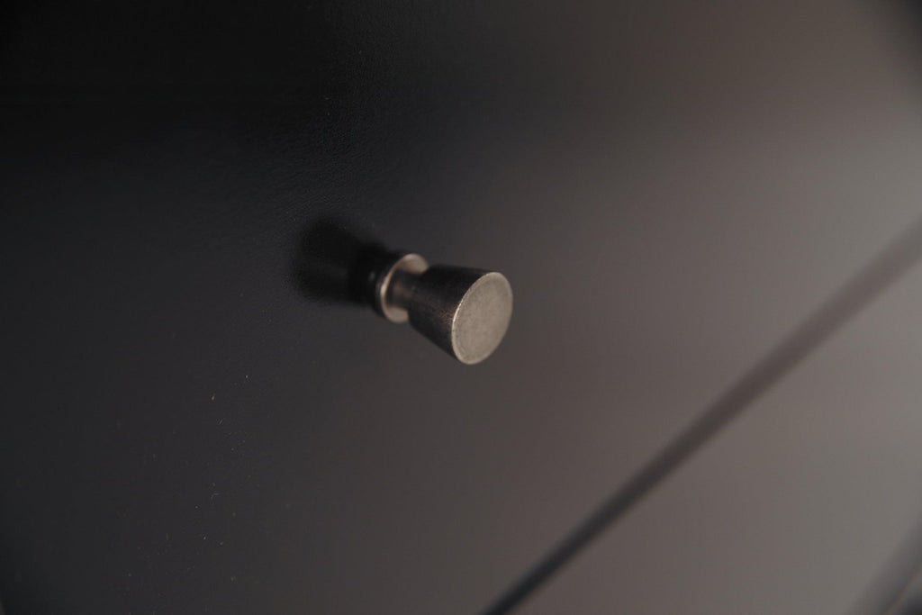 - Pewter-tone knobs